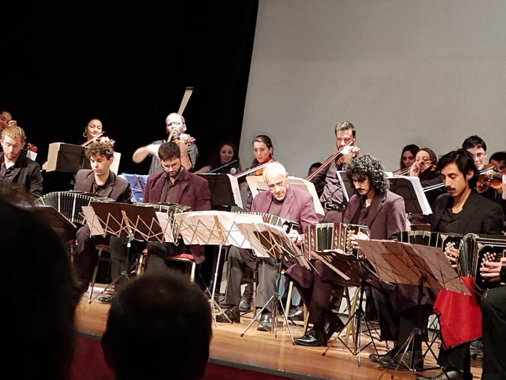 No, no, él era el director, la orquesta era de Ignacio Varchausky, él fue el que inventó todo. Balcarce fue uno de los pioneros que estaba ahí y dirigía. Y, a veces, invitaban directores, entre ellos a mí, con mis arreglos. Un día se fue Balcarce y vino Marconi, y cuando se fue Marconi, me llamaron a mí. Empecé en el año 2011, 2012, y hasta ahora estoy. Y los chicos que tengo ahora, los chicos, las chicas, diez puntos, tocan bárbaro. Hay un montón de muchachos, todos quieren estar en la orquesta esta porque salen bestias de ahí. Hay como treinta bandoneonistas, como cuarenta violinistas. Hace veintidós años que está la escuela y la conocen en todo el mundo. Vienen de Francia, de Japón, de Corea, de Estados Unidos, de Brasil, de todo el mundo.