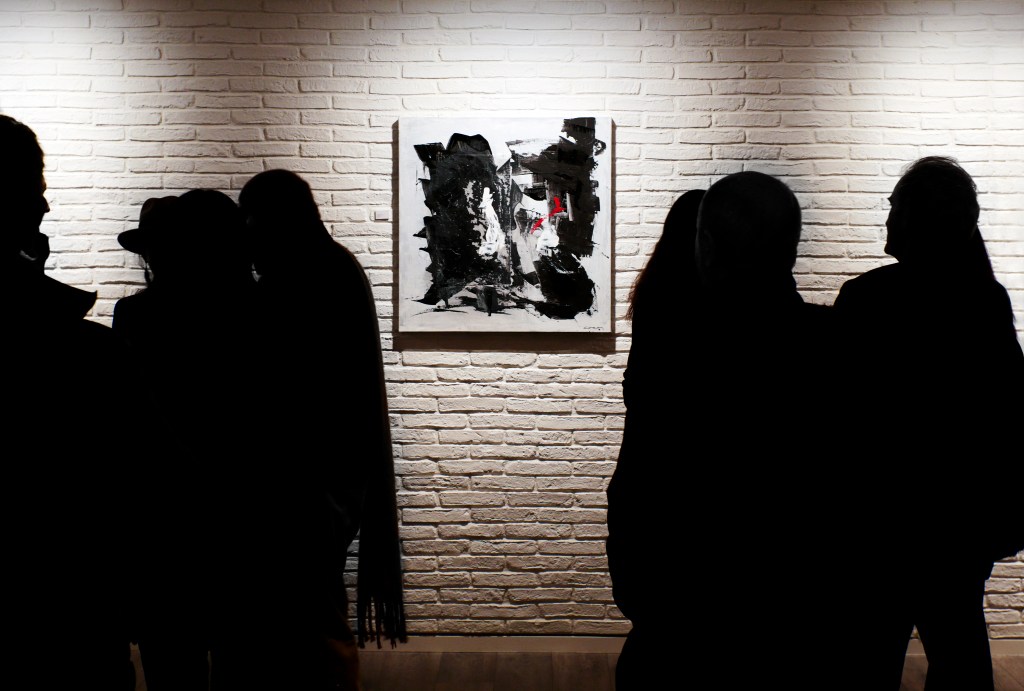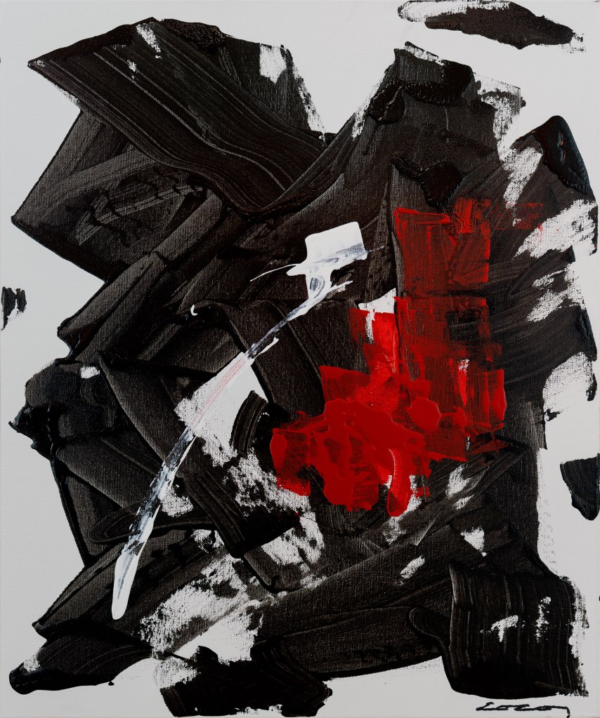 Dicen que toda evolución humana empieza con una decisión nueva. Con ese cuadro yo me dije “quiero suavizarme”. Suavicé dentro de la misma línea cromática que venía trabajando anteriormente. Soy un hombre que trabaja mucho el negro, el rojo y el blanco. Son un denominador común en mis cuadros. Hubo un tiempo del rojo que expresaba pasión, furia, sensación; y ahora en “Etiqueta Negra” trabajé el negro que, como te dije, para mí es la luz, el brillo.